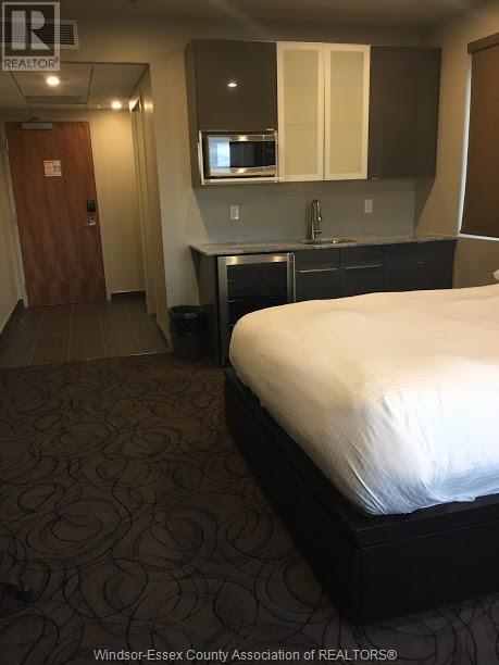 BEAUTIFUL HOTEL TYPE SUITE.NOW AVAILABLE FOR LEASE APPROX. 500 SF OF CONTEMPORARY STYLE ACCOMMODATIONS . FULLY FURNISH W/ KING SIZE BED, WORK STATION, FLAT SCREEN T.V INCLUDES MICROWAVE, SINK AND FRIDGE FULLY UPDATED BATHROOM W/ GLASS SHOWER, EXCELLENT QUIET LIVING FOR PROFESSIONALS FROM OUT OF TOWN NEEDING SHORT TERM STAYS. IDEAL FOR MEDICAL PROFESSIONAL, ACROSS FROM WINDSOR REGIONAL HOSPITAL. LANDLORD IS SEEKING 1 YEAR LEASE, NO SMOKING, NO PETS, $ 1,400.00 MTH PLUS H.S.T. THIS UNIT DOES NOT HAVE A KITCHEN, .INCLUDED FULLY SECURED BUILDING WITH A BEAUTIFUL COMMON COMMERCIAL GALLEY KITCHEN ON THE MAIN FLOOR, W/ COMMON LOUNGE SEATING AREA (, OUTSIDE PATIO W/ BARBECUE. GYM FACILITIES ON LOWER LEVEL. CALL FOR DETAILS. (id:4555)