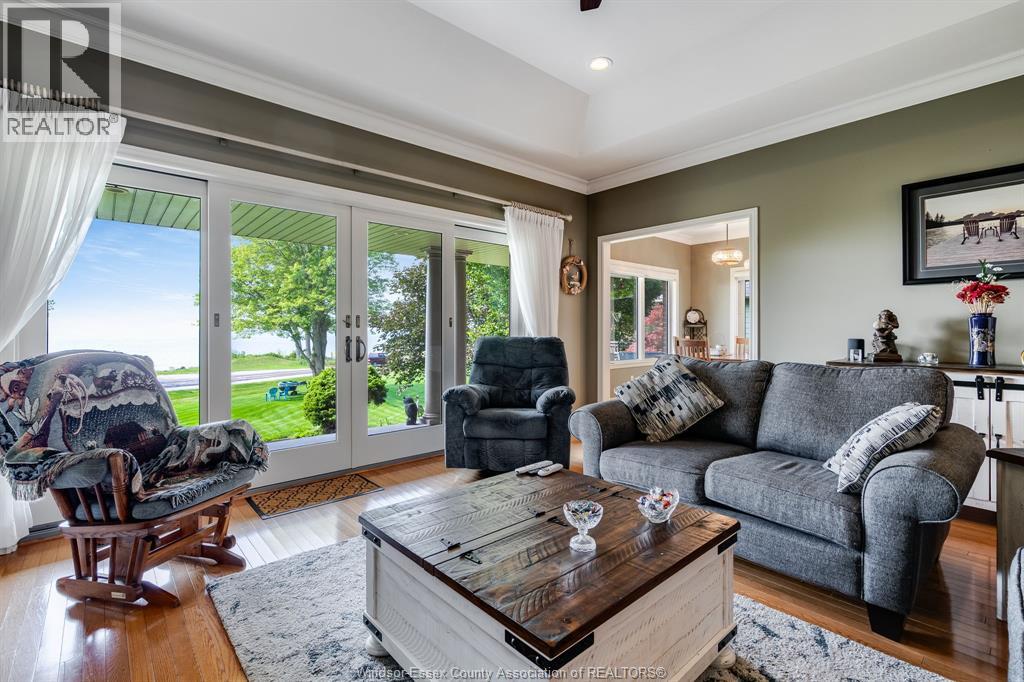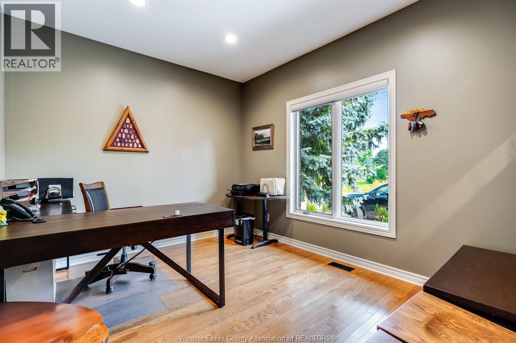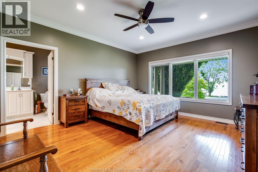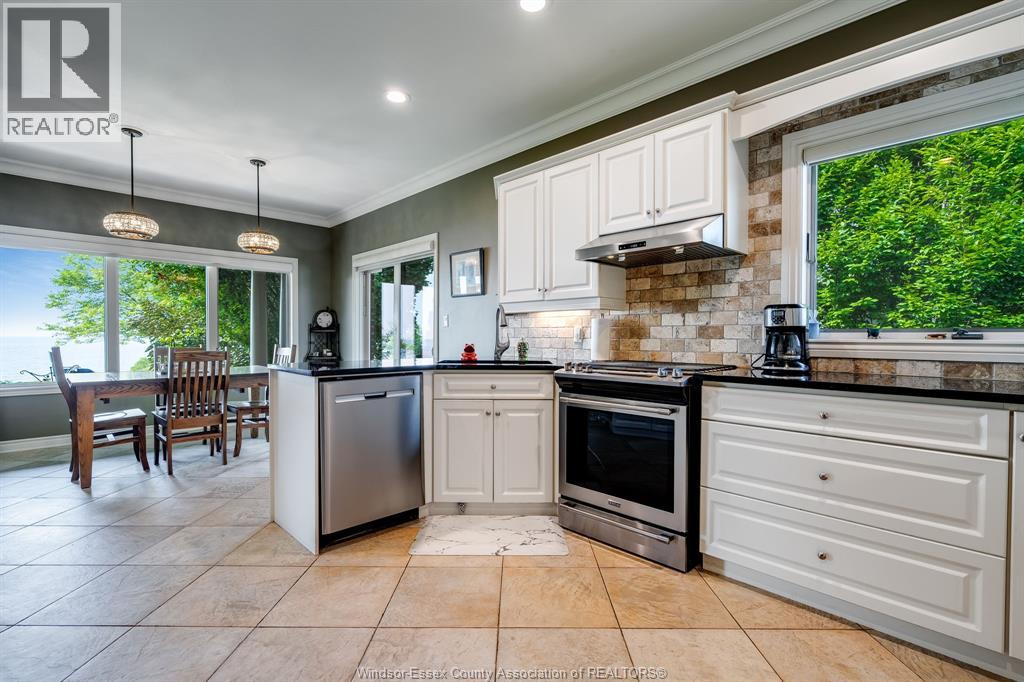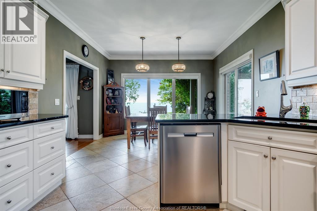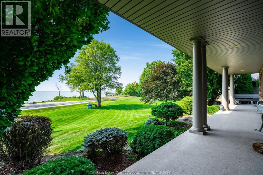 What a lake view! Sit on the covered deck that overlooks the large yard and the lake. Very accessible beach area across the road, to put your kayak in the water. This gorgeous brick ranch enjoys approx 1938 sq ft on the main fl with a beautiful fully-finished basement. Come in the front door, you are wowed by the big bright anderson windows (with solar powered blinds), that showcase the view. Beautiful, bright kitchen, with white cabinets, and granite countertops. Lovely living rm with gas f/p, 3 bedrooms, plus an office, 4pc bath, and the primary b/r has a spa-like 5 piece ensuite and walk in closet, main fl laundry. Lower level enjoys a large family room with an electric f/p and wet bar, also 3 rooms you can set up as you please, another nice size rec room, utility rm, 3 pc bath. A well on the property is set up with the sprinkler system (front and back lawns), saves on your water bill. Large 2.5 car garage. Enjoy local wineries & Kingsville's restaurants. 2 large sheds. (id:4555)