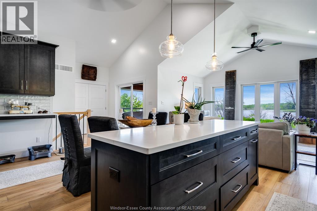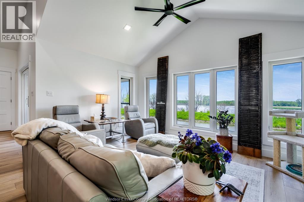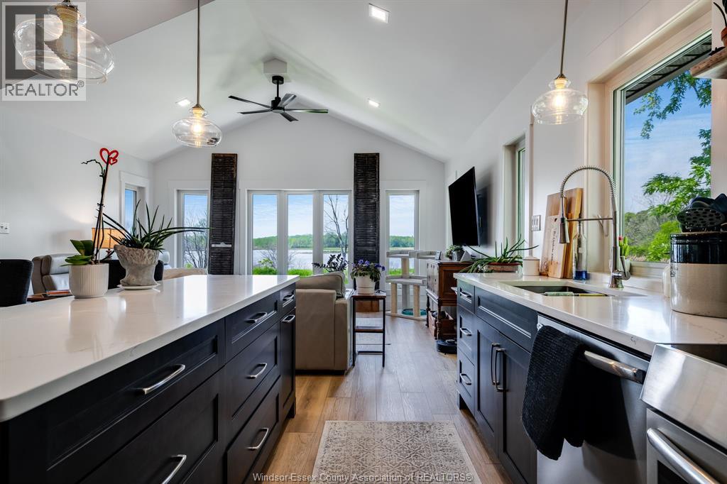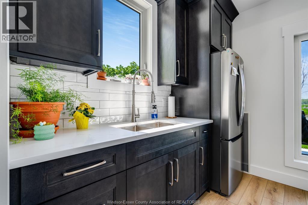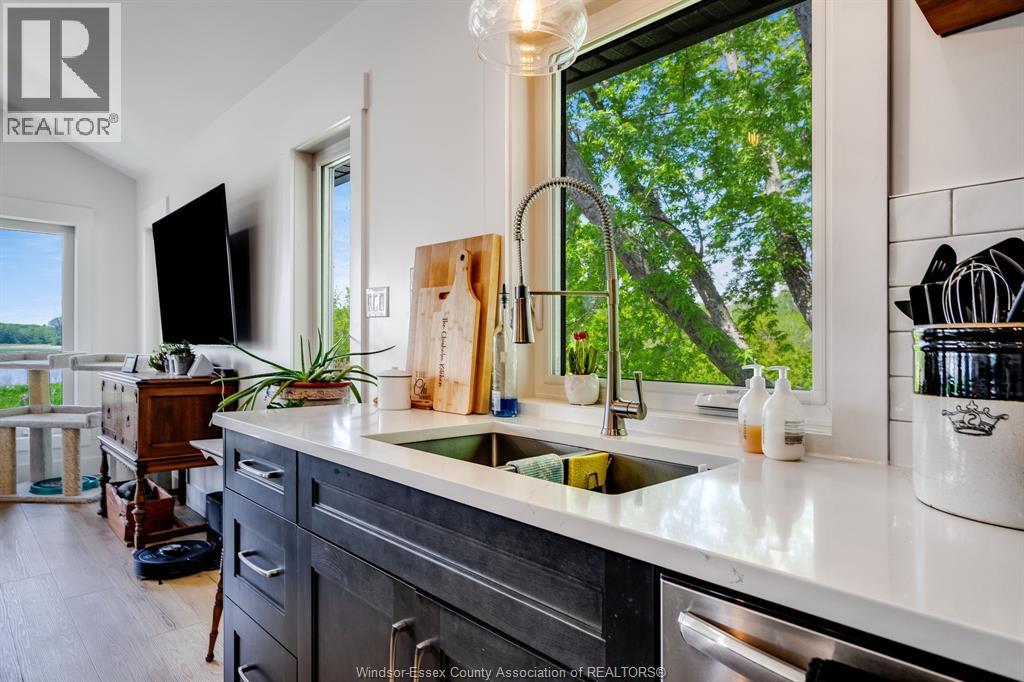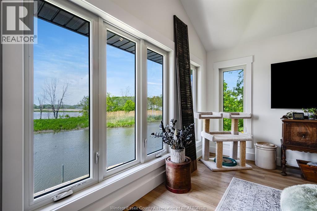 A rare opportunity to own a newly built, high quality waterfront home on Cedar Creek in Kingsville, designed to take full advantage of the sweeping views and serene setting. Built on a slab foundation, the main living space is thoughtfully elevated to the upper level, featuring two bedrooms, a full bath, and a bright open-concept layout that flows onto a covered porch overlooking the water. The ground floor is an entertainer’s dream—offering a stylish kitchenette, spacious gathering area, 2-piece bath, and walk-out to a patio perched above the creek. An attached heated/cooled garage adds comfort and year-round convenience. Whether you're seeking a peaceful escape or a unique space to host family and friends, this property offers the best of both worlds—just minutes from wineries, golf, and downtown Kingsville. Buyer to verify all information. (id:4555)