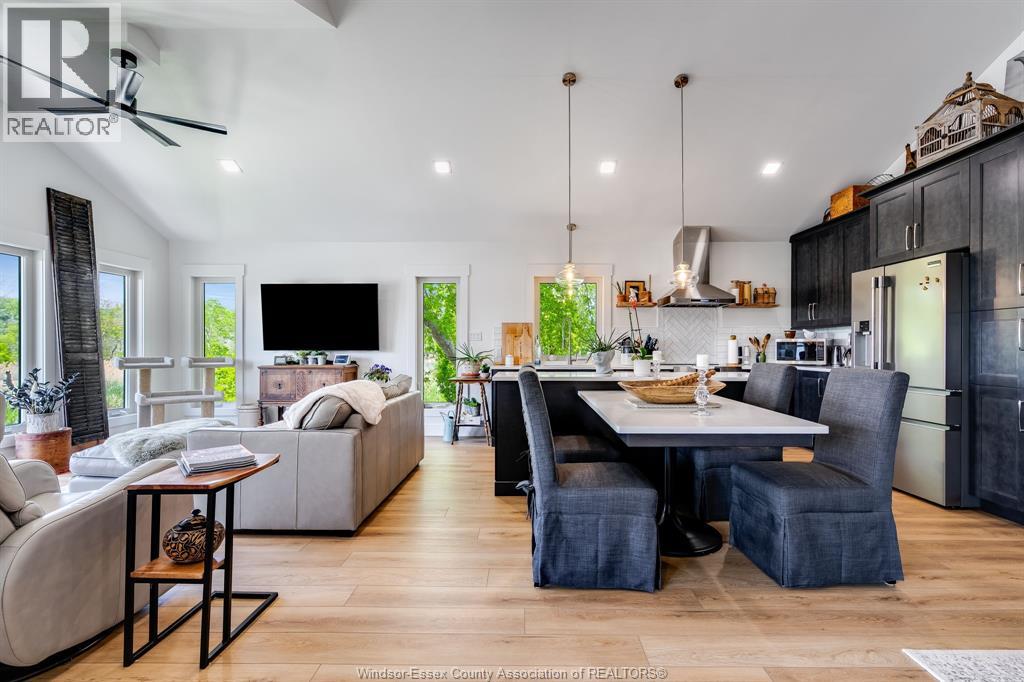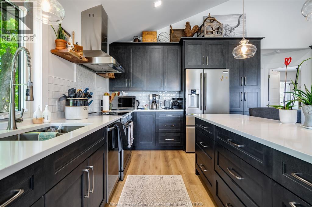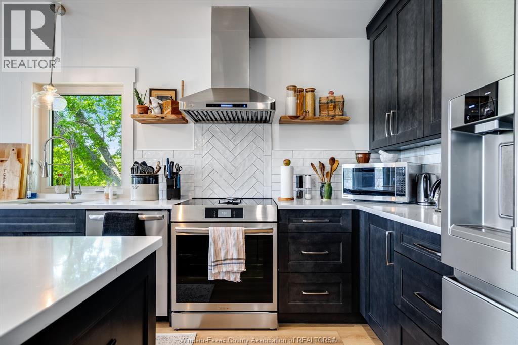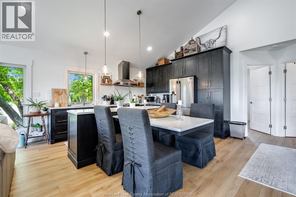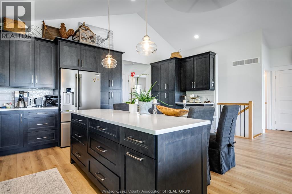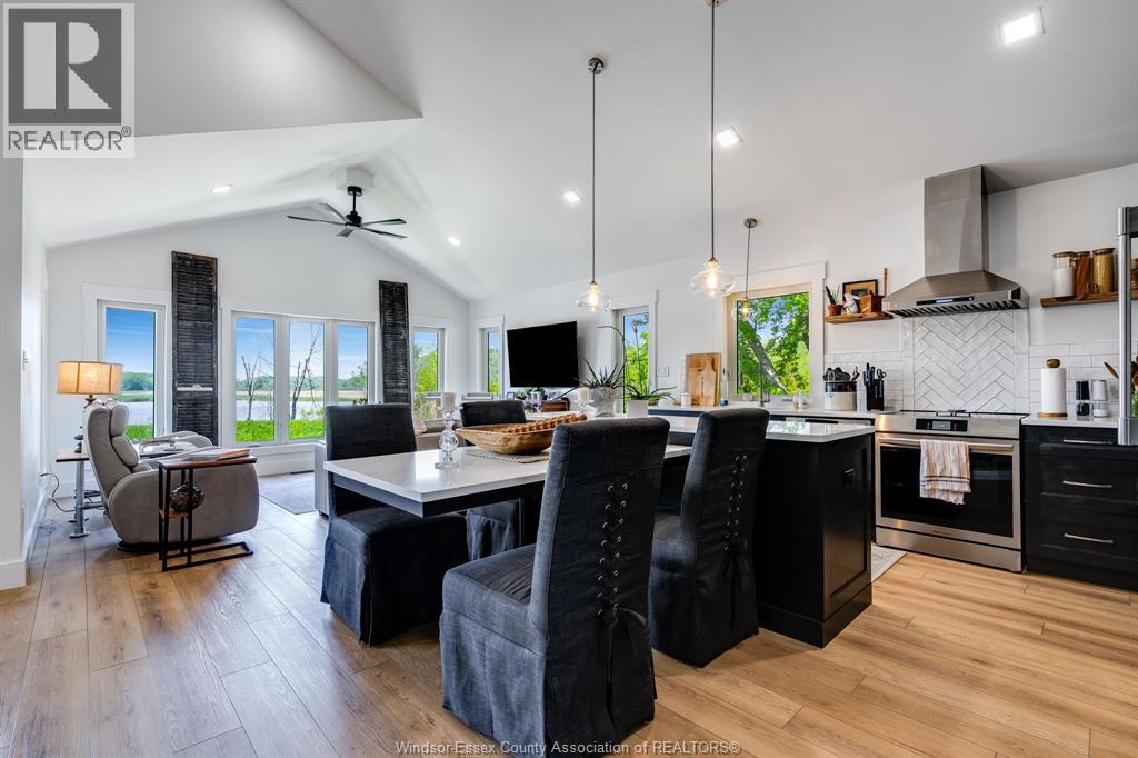 A rare opportunity to own a newly built, high quality waterfront home on Cedar Creek in Kingsville, designed to take full advantage of the sweeping views and serene setting. Built on a slab foundation, the main living space is thoughtfully elevated to the upper level, featuring two bedrooms, a full bath, and a bright open-concept layout that flows onto a covered porch overlooking the water. The ground floor is an entertainer’s dream—offering a stylish kitchenette, spacious gathering area, 2-piece bath, and walk-out to a patio perched above the creek. An attached heated/cooled garage adds comfort and year-round convenience. Whether you're seeking a peaceful escape or a unique space to host family and friends, this property offers the best of both worlds—just minutes from wineries, golf, and downtown Kingsville. Buyer to verify all information. (id:4555)