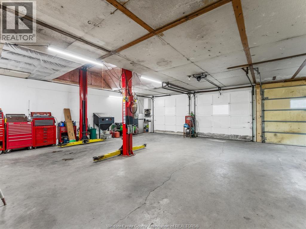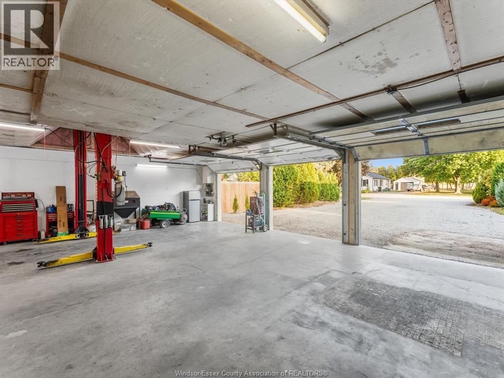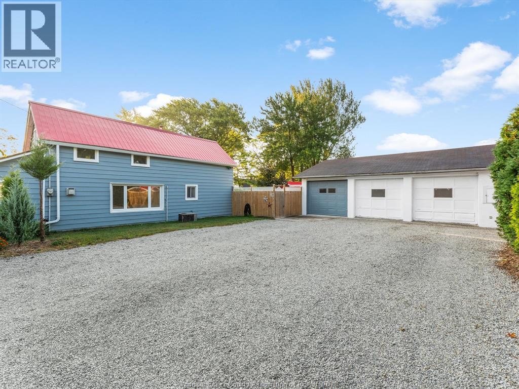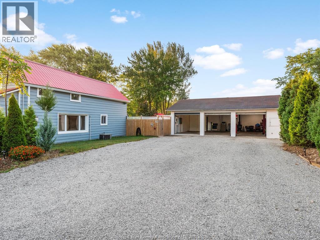 Introducing 1057 Oak Ave in beautiful Kingsville! Sitting on a spacious double lot, this property is a dream for car enthusiasts, hobbyists, or mechanics seeking income potential. Outside you'll find a commercial-grade heavy-duty gravel drive, perfect for parking dump trucks, trailers, or multiple vehicles. The showpiece is the oversized 3-car detached garage, heated with a 60,000 BTU forced air gas furnace and/or C.S.A. certified airtight wood stove. complete with 3 doors, wall-mounted exhaust fan, 60-gallon commercial air compressor (7HP), welder plug, and professional 10,000 lb car hoist in like-new condition, ideal for a home business or serious workshop. The fenced yard is landscaped & offers a covered patio area plus a steel shed with cement floor. Step inside to find a freshly painted 3-bedroom, 1-bath home featuring newer windows, a bright kitchen and cozy living room with gas fireplace. Enjoy peaceful country living just minutes to Lake Erie and all amenities. (id:4555)