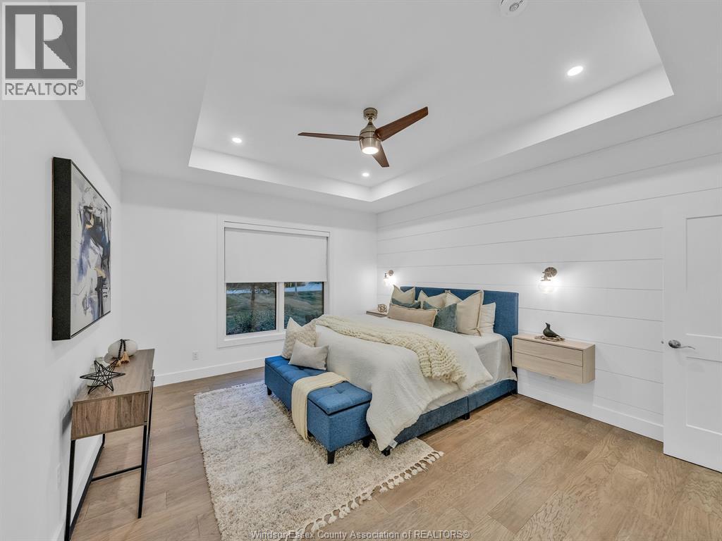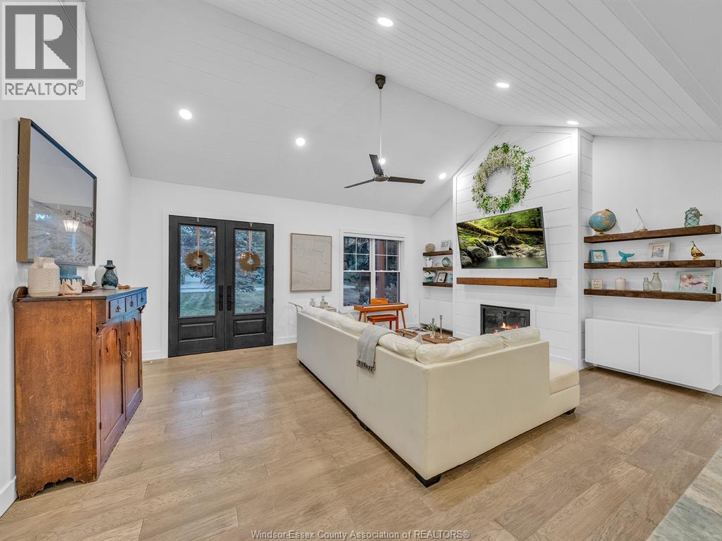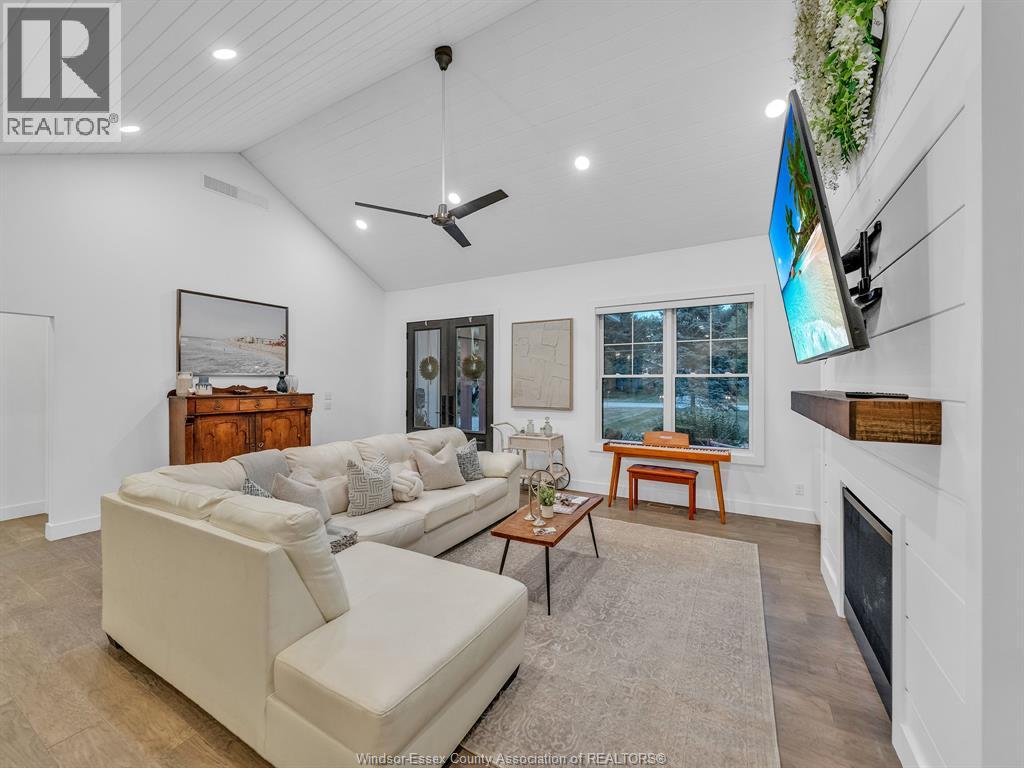A rare find, luxury meets charm. A quiet, treed lane where neighbours have lived for years. Safe for evening walks, friendly for pets & families. Ideally nestled btwn Kingsville & Leamington. A rare mix of peace, community & accessibility. Set on a private ½-acre lot at the end of the street captures that feeling of retreat & connection. Framed by century-old trees, offering rare privacy on all sides. The property's low-maintenance landscaping with perennials blooming in wery season. At Christmas, the setting is the perfect backdrop for magical lights & gatherings. Step inside to discover a home that feels both grand & effortlessly livable. The thoughtful one-floor layout is designed to suit a growing family or a mature buyer. With 3 large bdrms, 2.5 bths on the main lwel, heated bthrm floors, an o/sized primary suite w/ walk-in closet & spa-inspired ensulte, whispers comfort & quality. Natural light floods the Interiors. Finished basement w/ full bthrm & room for two more bdrms, offices, or hobby spaces, along with generous storage. Outdoors, enjoy a 2-tiered deck & perfectly sized yard that feels private, wooded and easy to maintain. Room for a pool, play space, or evenings spent under the canopy of trees. A 2 car garage w/ ramp access adds practicality. The location is unmatched: 2-min walk to sushi, and convenience store, Quick 5-min drive to schools, groceries, arenas, and restaurants. It's a home where life feels easy, joyful, and a little bit magical. (id:4555)