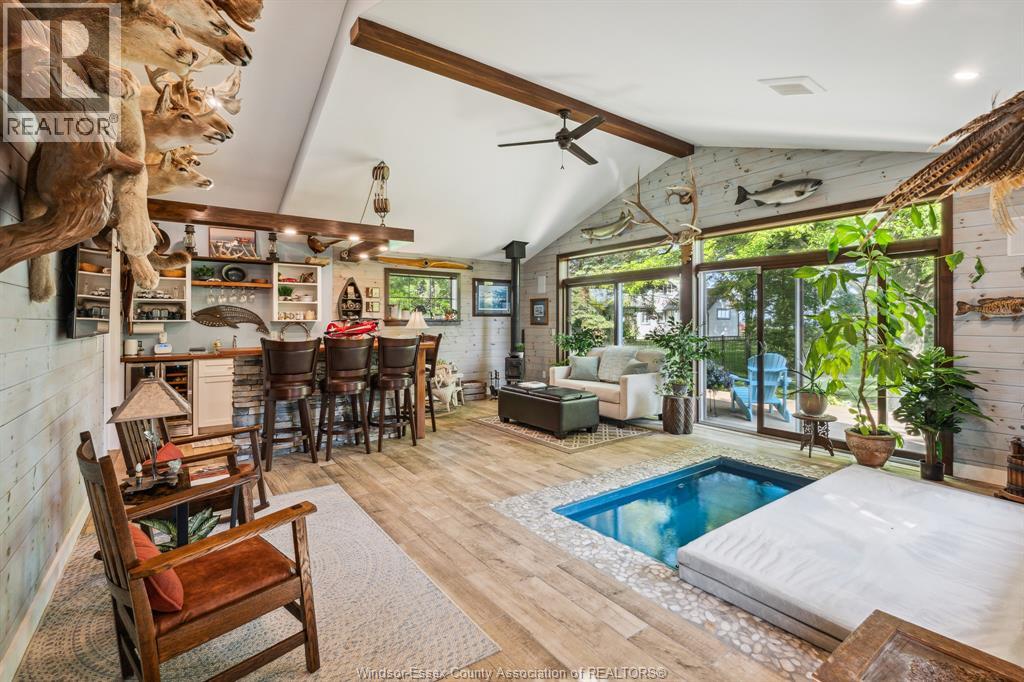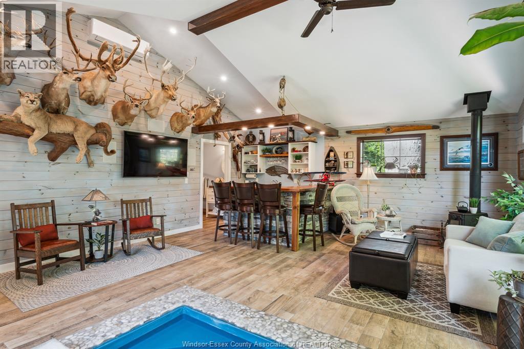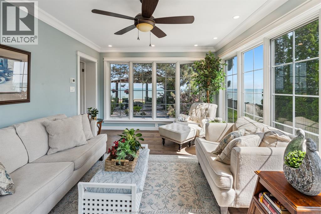 Running along Southern Ontario’s prestigious wine route, this magnificent estate captures sweeping views of Lake Erie from nearly every vantage point. Whether enjoying the beautifully manicured grounds, sipping coffee from your private bedroom balcony, or relaxing beside a picture window, every space is designed to embrace the serenity of the waterfront.The main residence offers approximately 3,300 sq. ft. of finished living space, thoughtfully crafted with an Eastern White Cedar exterior. Inside, you’ll find 3+1 bedrooms, 3 baths, a custom hickory kitchen, built-in surround sound with a home theatre system, and a 2.5-car garage. Expansive windows throughout flood the home with natural light and frame stunning lake views.Adding to the property’s allure, the coach house provides an additional 1,450 sq. ft. (approx.) of versatile living space. Highlights include a 24' x 24' open living area, a striking black walnut bar, indoor inground hot tub, wood-burning fireplace, in-floor hot water heating, a private bathroom, and both a 3-car garage and a separate 1-car garage—perfect for guests, hobbies, or entertaining.Set on a generous 82.87 ft. x 364.64 ft. lot with an additional 50 ft. of deeded lake frontage, this property is designed for both relaxation and function. Features include an invisible dog fence and countless thoughtful touches throughout.A rare opportunity, this estate seamlessly combines timeless elegance with modern comfort, offering unparalleled waterfront living in one of Southern Ontario’s most soughtafter locations. (id:4555)