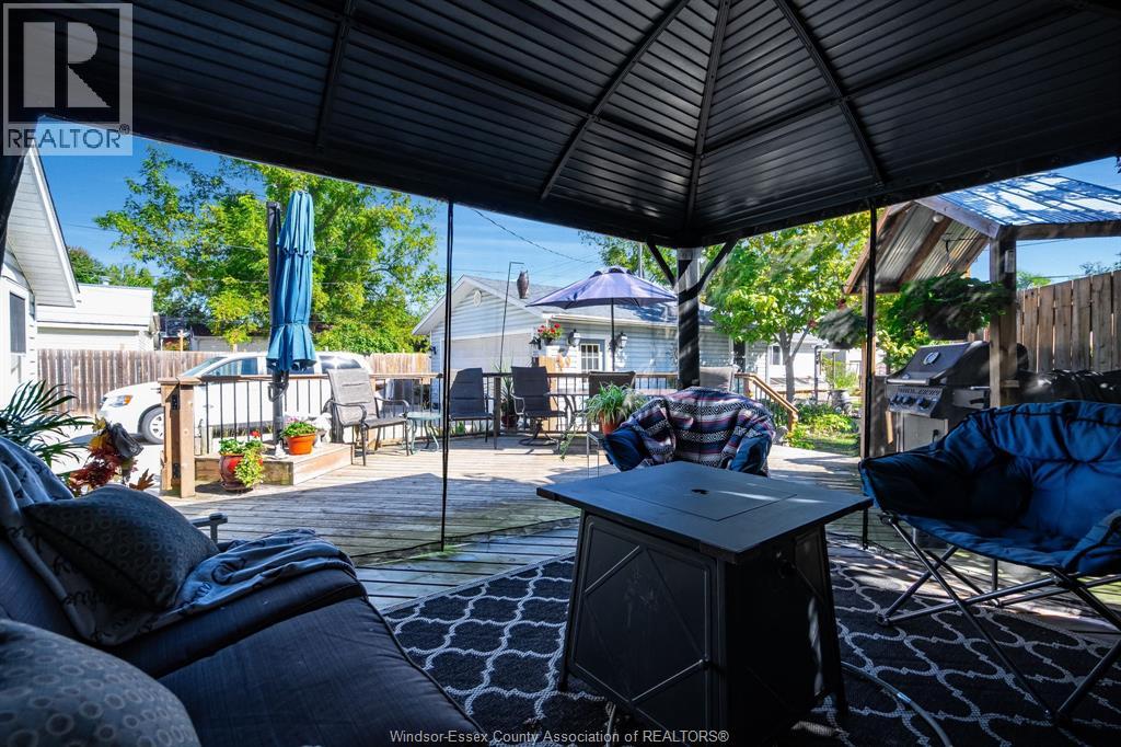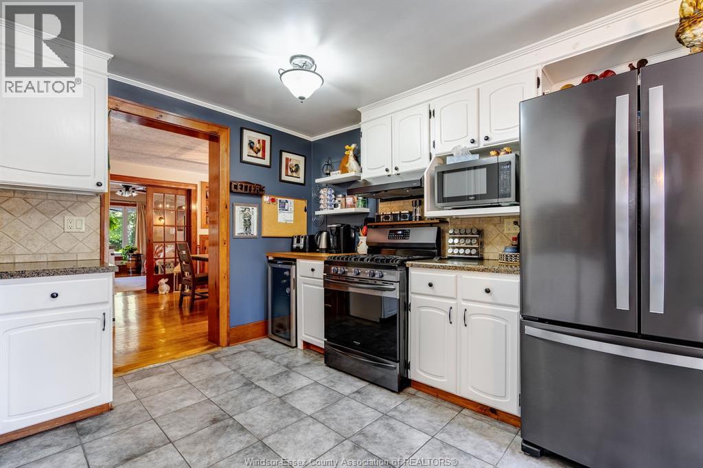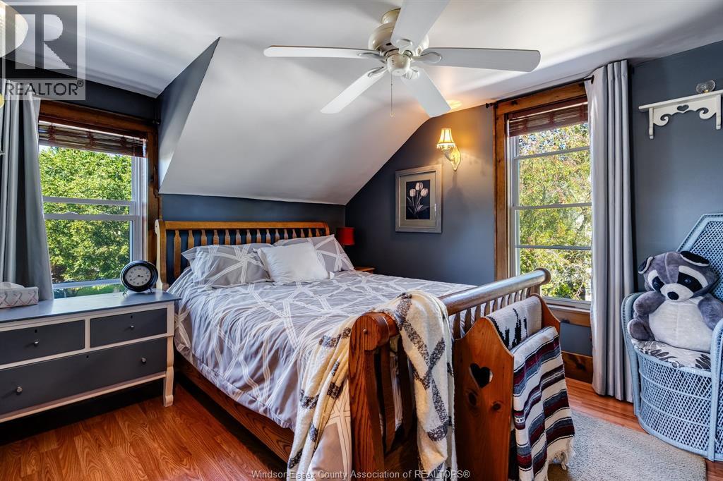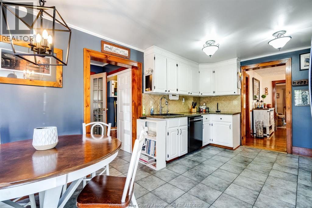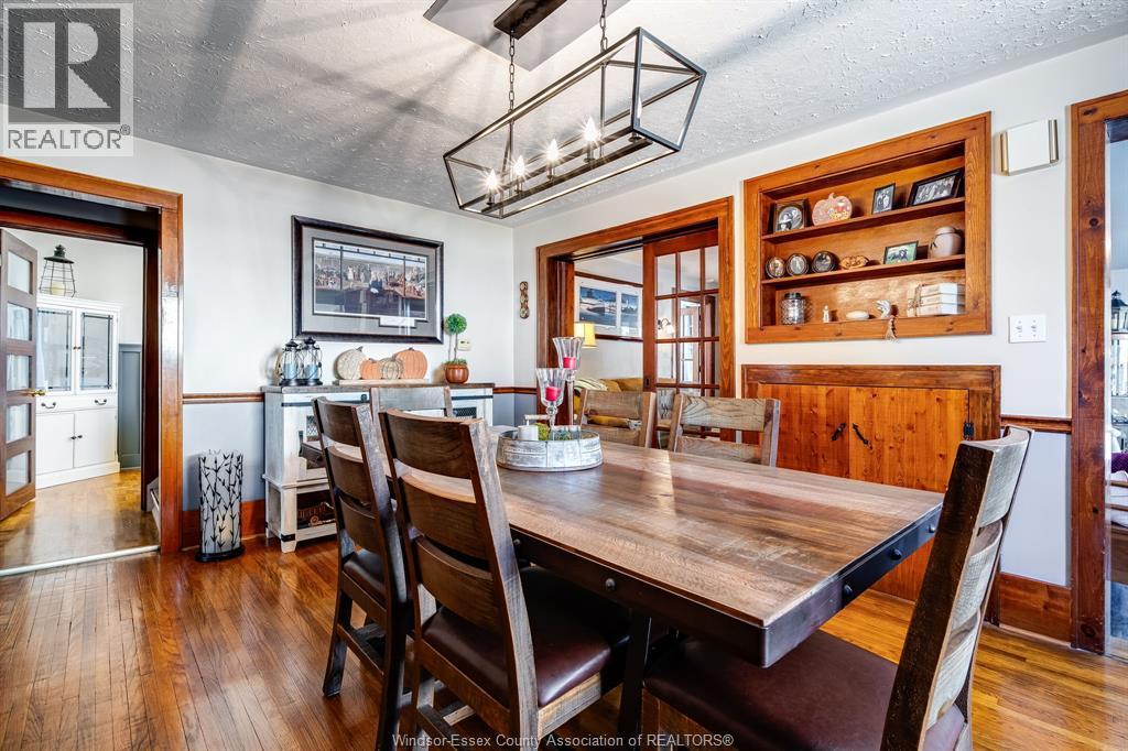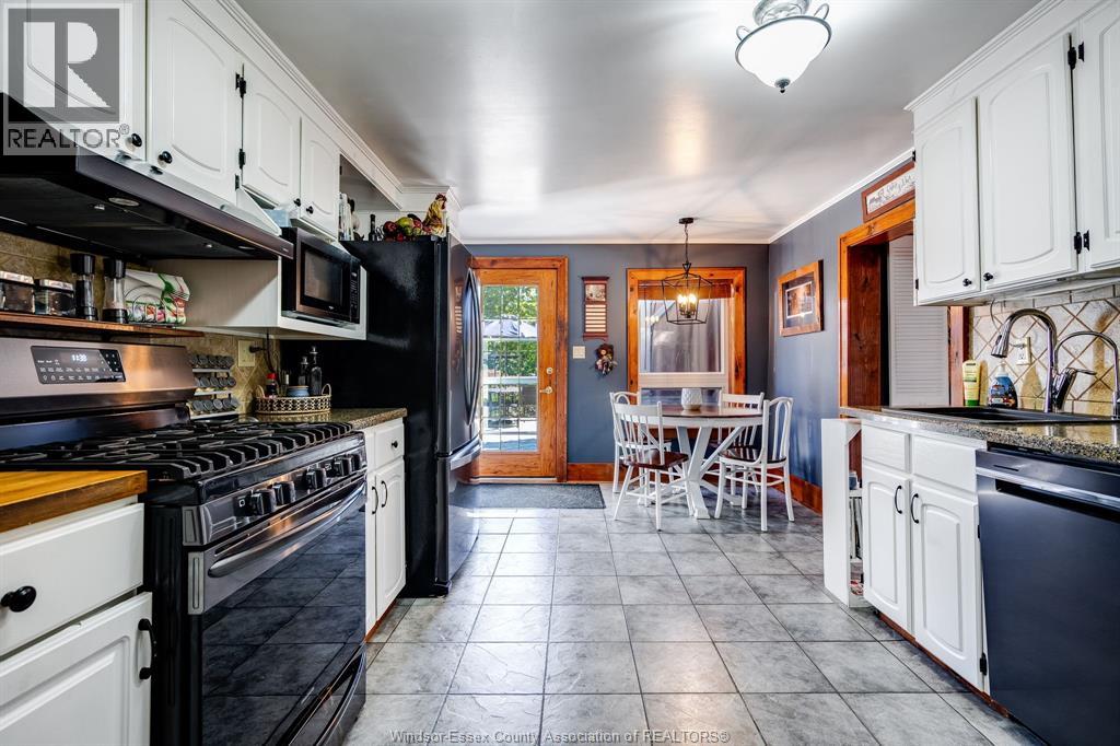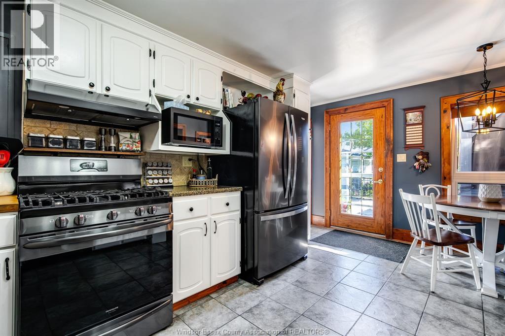 This charming Kingsville home, filled with original character and warm woodwork has beautiful updates throughout, and will steal your heart the moment you walk up to the porch. Main floor-enclosed porch, living room with electric fireplace, and french doors, beautiful dining room with wood work and built in cabinets (such a wonderful space for those special family meals), nice kitchen with granite counter tops, mudroom, main fl laundry, 4 pc bath with granite counter top, bedroom or office, primary bedroom with walk-in closet and garden doors out to the gazebo in the huge backyard, upstairs has 2 more bedrooms. The spacious backyard enjoys a 2 car garage with a man cave attached to it, two storage sheds, fish pond, fire pit and a lovely deck with a gazebo, a small shelter that covers the barbeque. Located half way between lakeside park with a nice beach and uptown with it's great shops and restaurants. (id:4555)