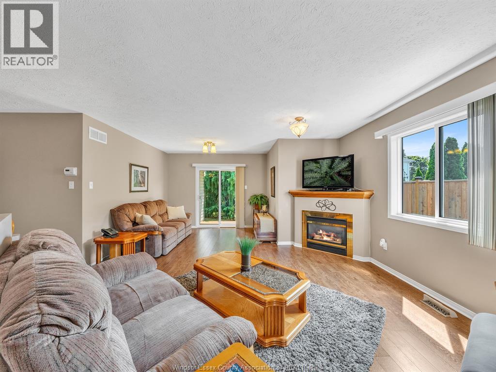 Welcome to this beautifully maintained semi-detached ranch-style home located in the charming town of Amherstburg. Just a short walk to the historic downtown core, restaurants, shops, parks, and the beautiful waterfront, this home offers the perfect blend of comfort and convenience. Step inside to discover a spacious open-concept layout featuring updated flooring throughout the main level, fresh modern paint, and a bright living room complete with a cozy gas fireplace. The living area opens onto a covered rear deck, overlooking a fully fenced backyard—ideal for relaxing, entertaining, or letting pets roam free. This home offers two generously sized bedrooms, including a primary suite with cheater access to the full bathroom. Main floor laundry adds to the home's practicality and ease of living. Downstairs, you'll find a full, wide-open unfinished basement with plenty of room to expand and a rough-in for a second bathroom—offering great potential for future living space. Additional highlights include a single-car garage, a concrete driveway, and recent updates such as shingles, central air, flooring, paint, fence, and deck. Whether you're downsizing, buying your first home, or looking for a peaceful place to call home, this property is a must-see. Move-in ready and close to all amenities—don’t miss out! (id:4555)