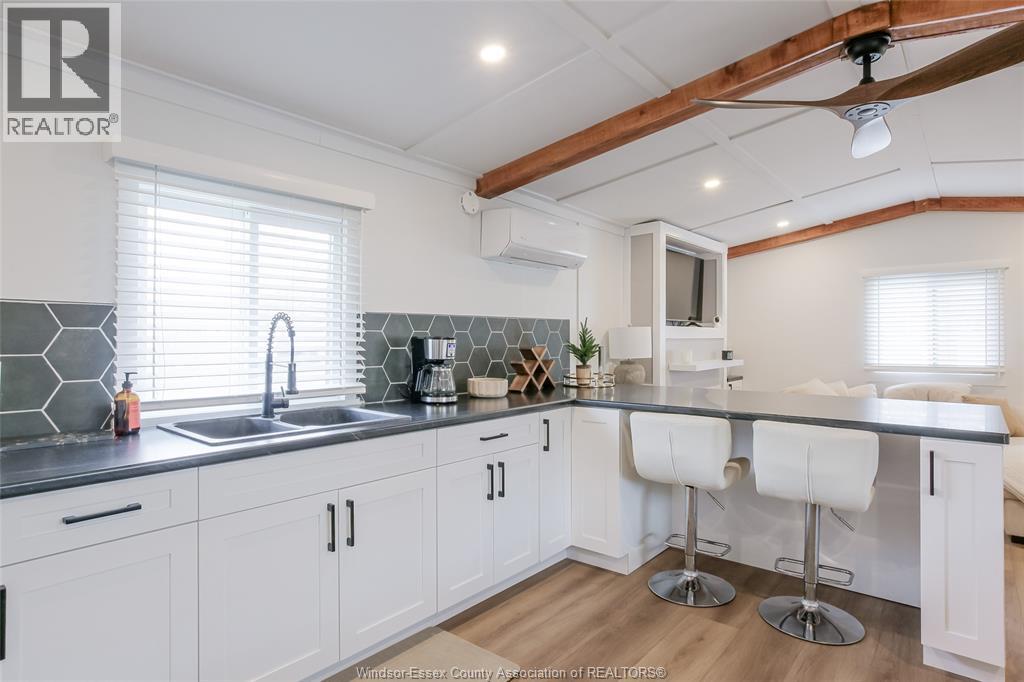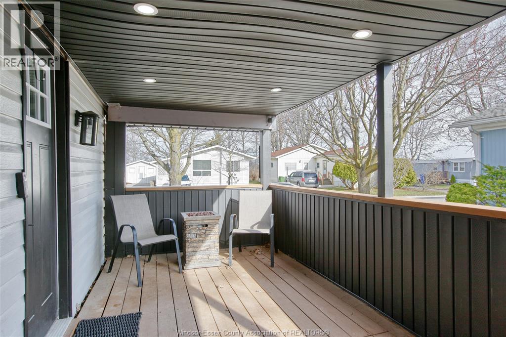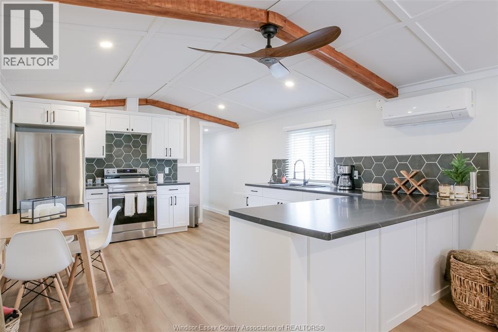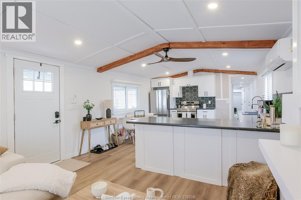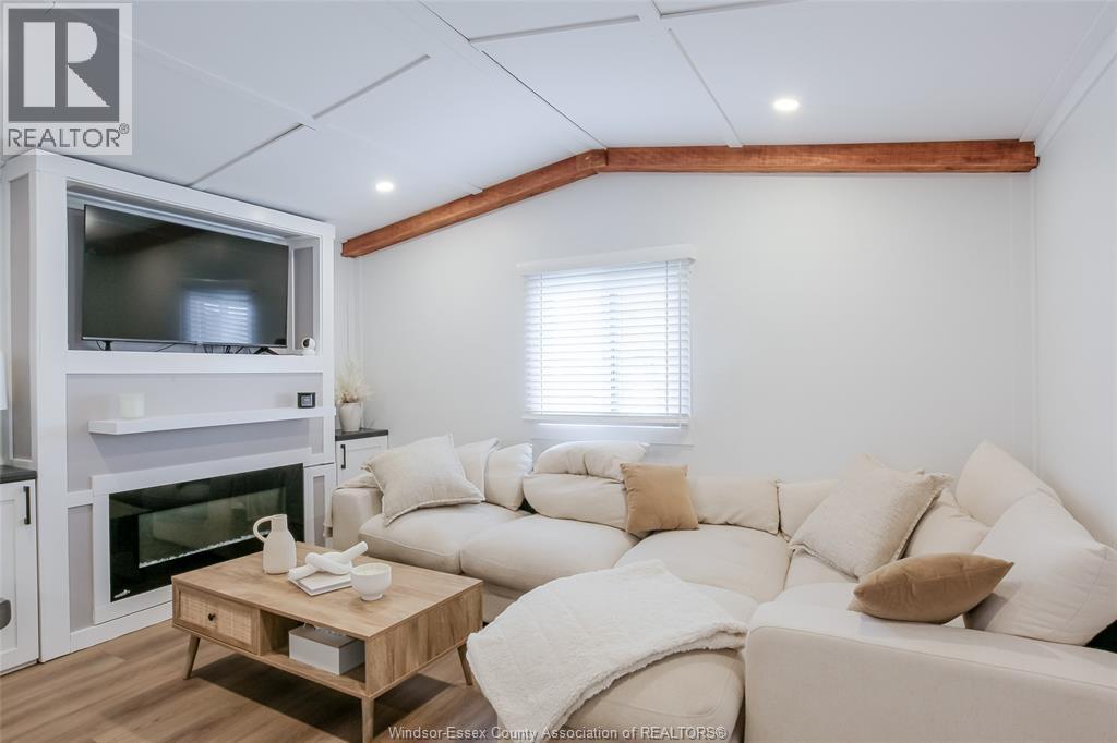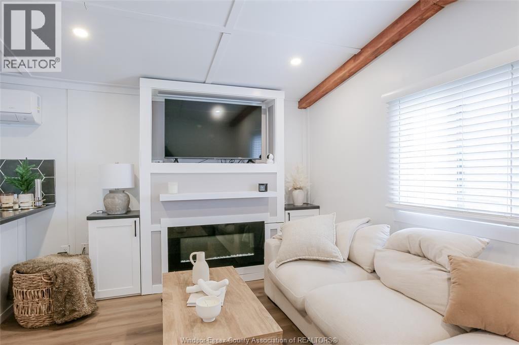 Wow - this one is sure to impress - welcome to 184 Neil in desirable Viscount Estates, Essex sitting on a spacious corner, treed lot with deep cement driveway. This beautifully fully renovated home provides the utmost charm, comfort & style, offering modern updates throughout including a stylish kitchen w/updated appliances, beautifully remodelled bathroom, new flooring, cozy family rm w/fireplace, efficient heat pumps (heating & cooling) plus brand new gas furnace (2025); HWT, features 2 spacious bedrooms, a bright & functional layout plus a large front porch - perfect for relaxing. This home is move-in ready. The generous shed with hydro adds extra convenience and storage. Major upgrades include a new roof, gas furnace, and updated electrical and plumbing—providing peace of mind for years to come. Land lease: $612.29/month (buyer to verify). Park approval required. (id:4555)
