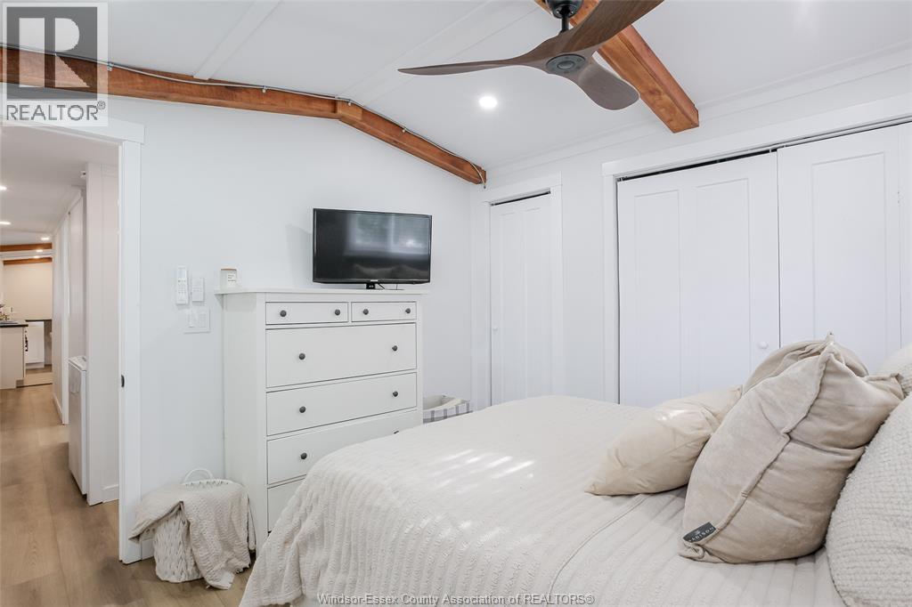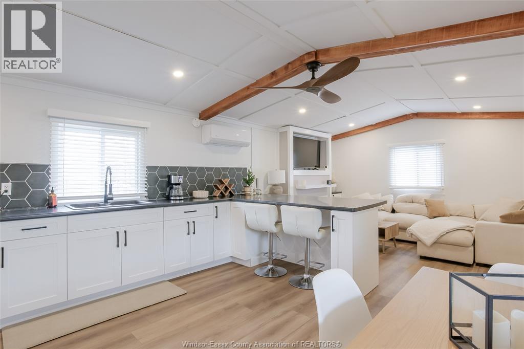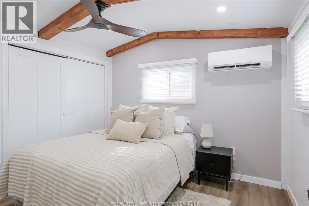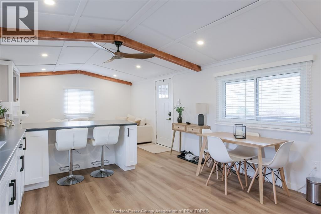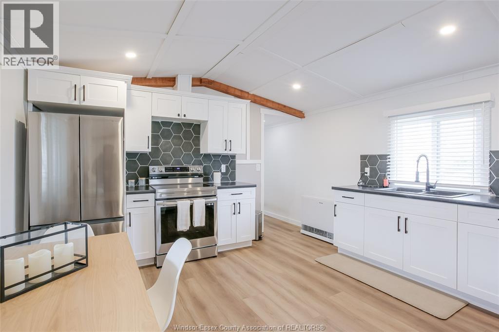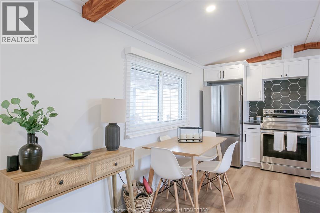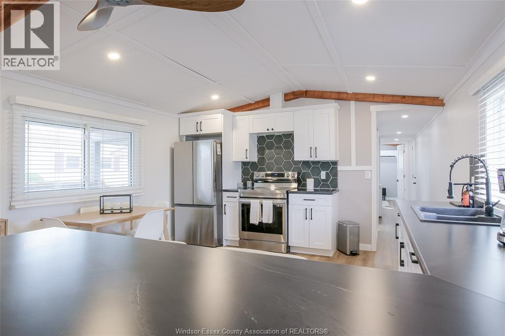Wow - this one is sure to impress - welcome to 184 Neil in desirable Viscount Estates, Essex sitting on a spacious corner, treed lot with deep cement driveway. This beautifully fully renovated home provides the utmost charm, comfort & style, offering modern updates throughout including a stylish kitchen w/updated appliances, beautifully remodelled bathroom, new flooring, cozy family rm w/fireplace, efficient heat pumps (heating & cooling) plus brand new gas furnace (2025); HWT, features 2 spacious bedrooms, a bright & functional layout plus a large front porch - perfect for relaxing. This home is move-in ready. The generous shed with hydro adds extra convenience and storage. Major upgrades include a new roof, gas furnace, and updated electrical and plumbing—providing peace of mind for years to come. Land lease: $612.29/month (buyer to verify). Park approval required. (id:4555)